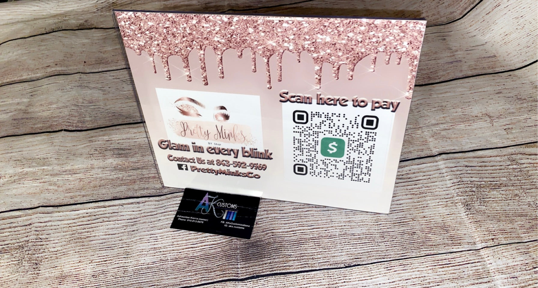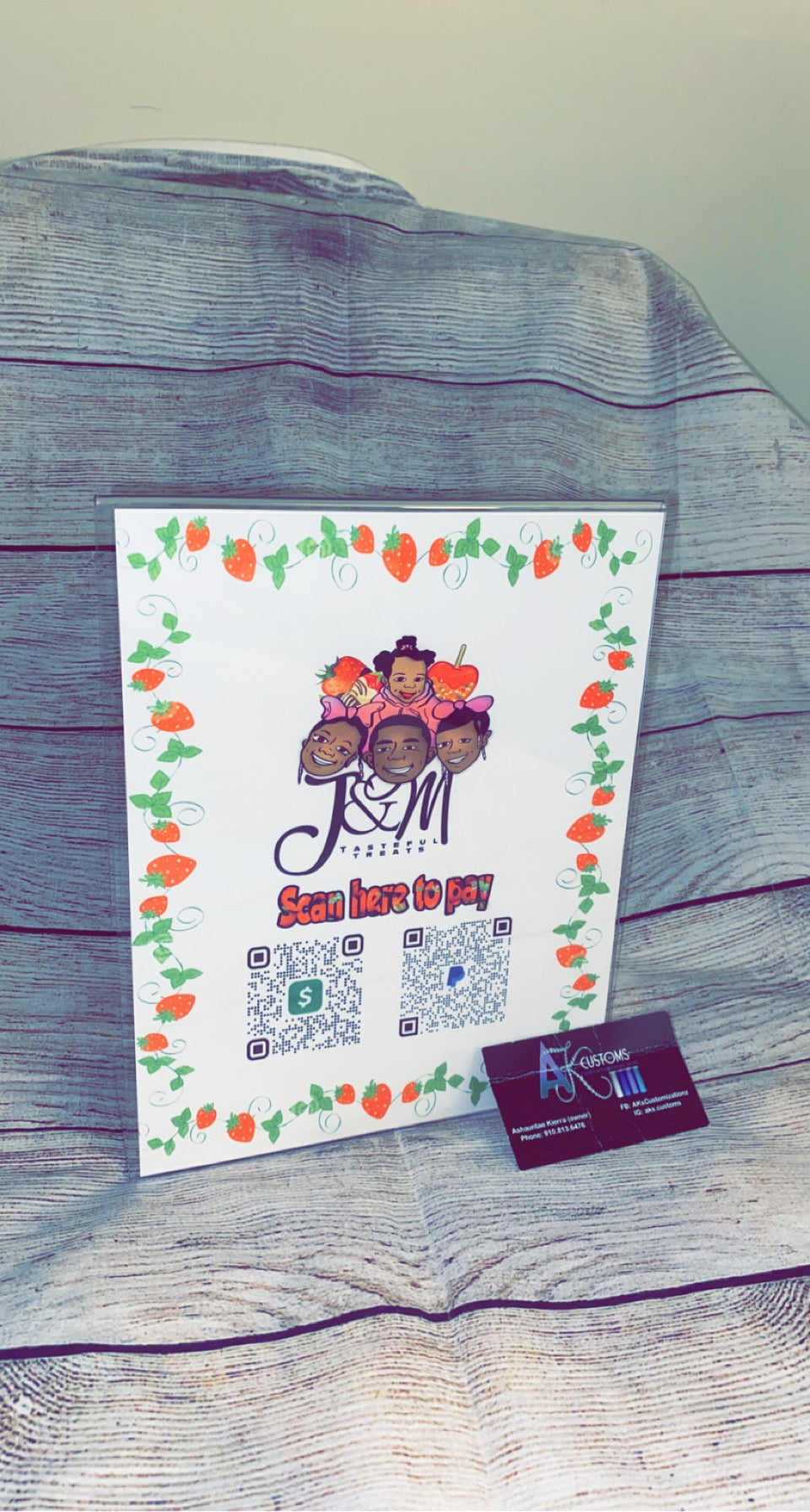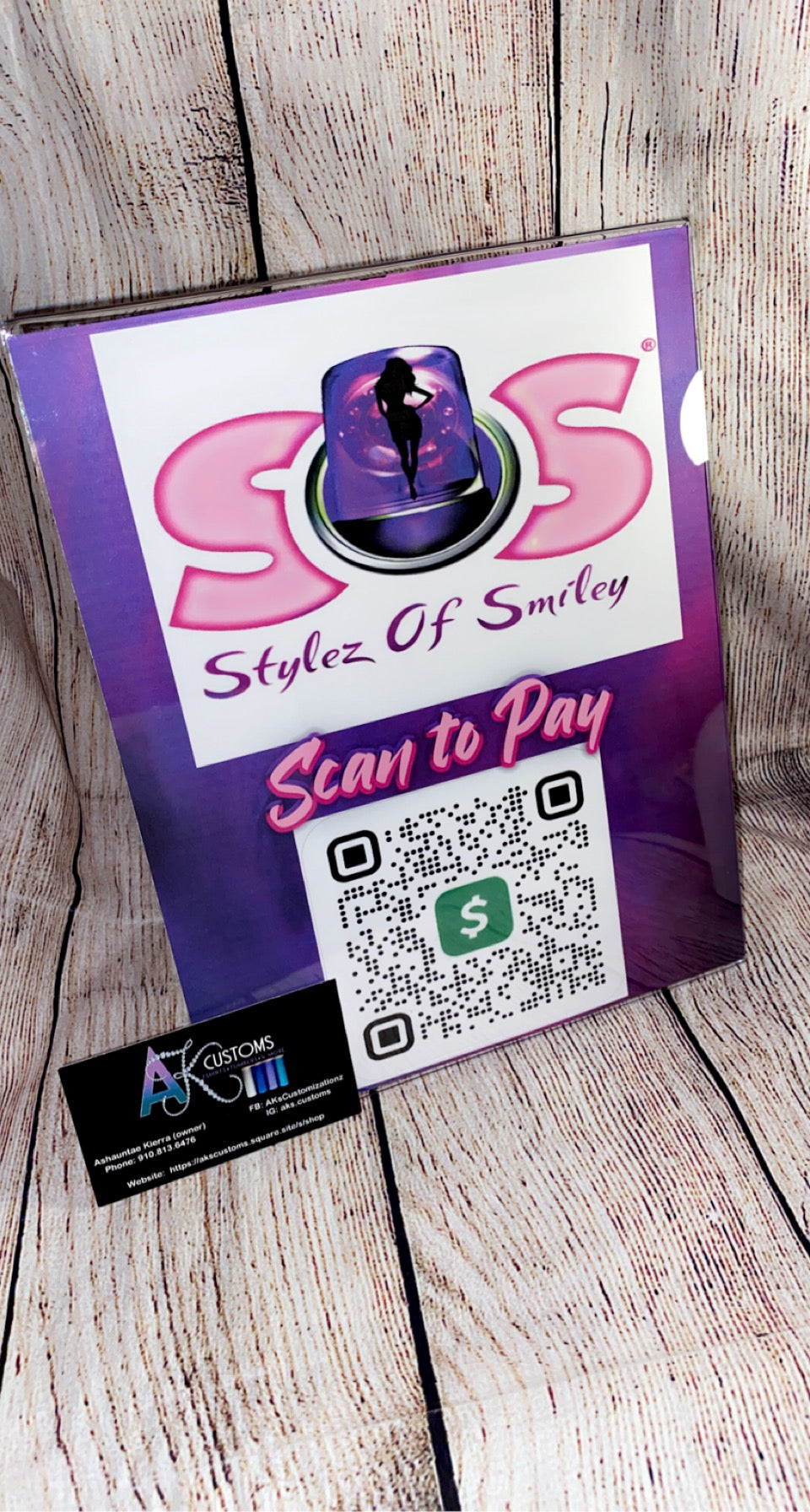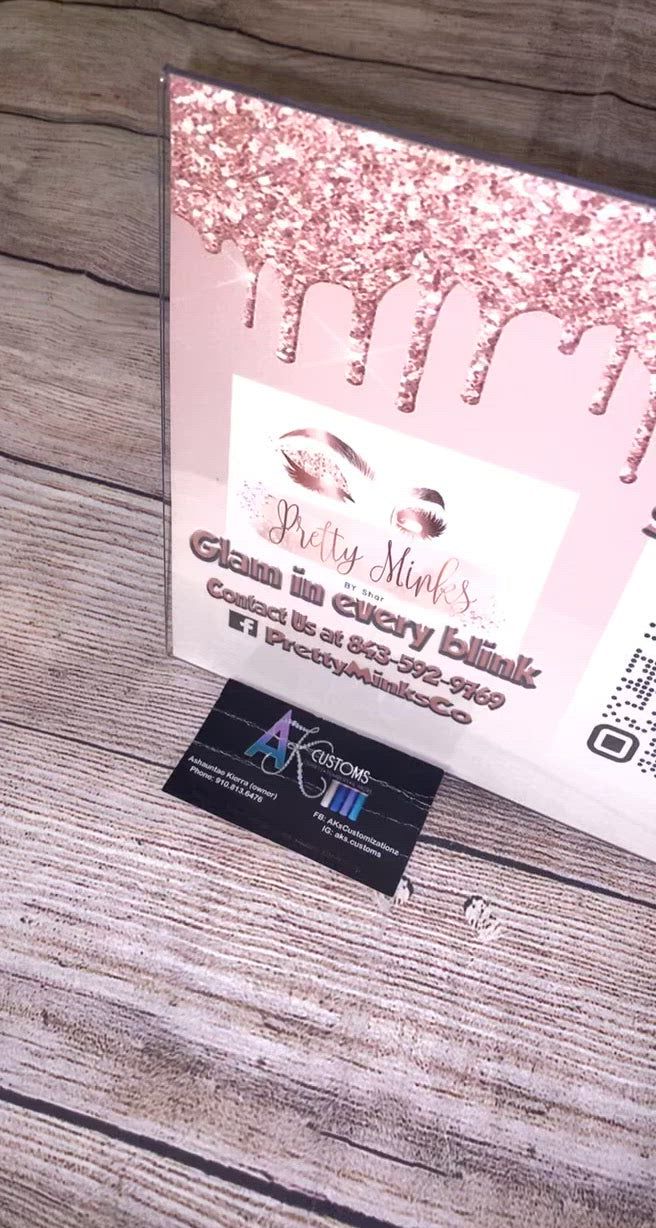 Payment signs ( can add contact info, website info, payment info including cash app, paypal, apple pay, and etc.) WE ONLY OFFER THESE IN ACRYLIC FRAMES AT THIS MOMENT. COMES IN TWO ORIENTATIONS, LANDSCAPE OR PORTRAIT.